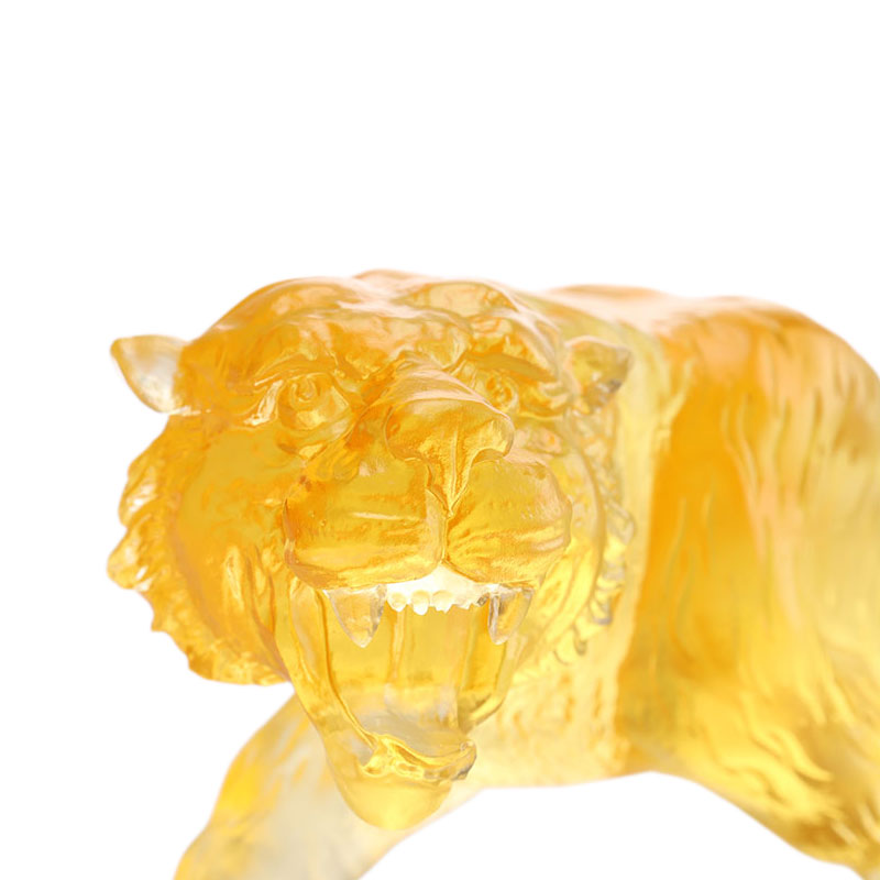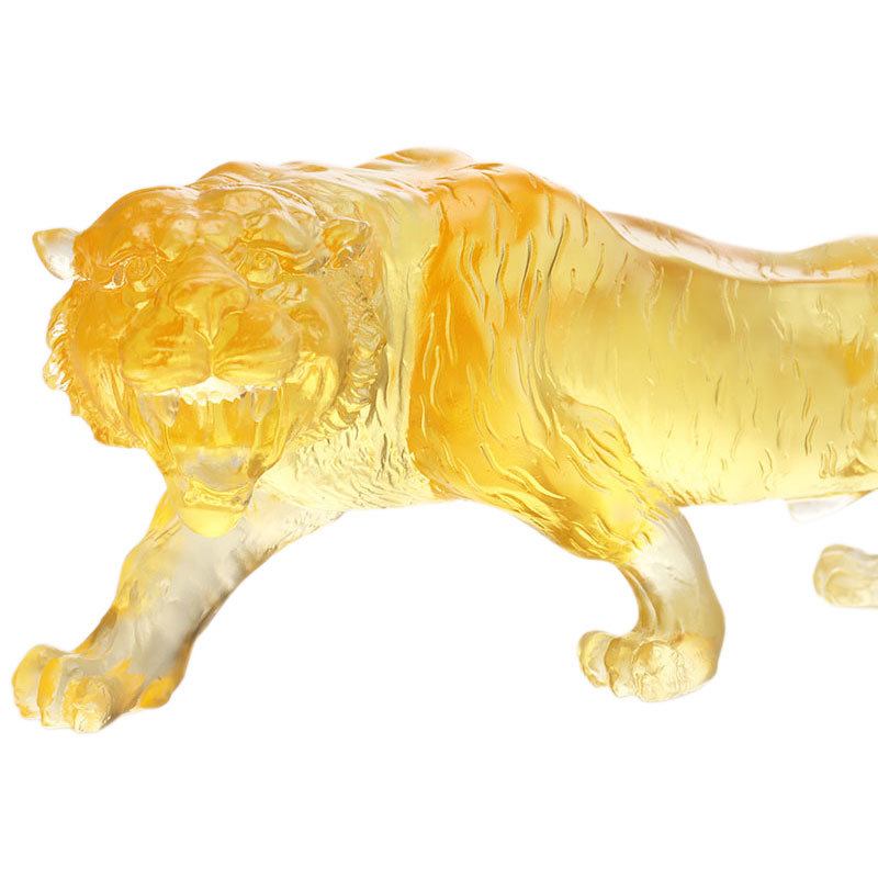 色釉は古くから伝わる神秘的な素材で、透き通った透明感と多彩な色彩が特徴です。この装飾品のセットは、色釉薬のこれらの利点を実証しています。虎は雄大で、筋肉の一本一本まで緻密に描写されています。その姿勢は、次の瞬間にも獲物に襲い掛かる準備ができており、王のような態度を示しています。龍のイメージは曲がりくねっており、龍のひげや鱗などの細部は、まるで雲の中を飛んでいるかのように本物そっくりで、神秘的な雰囲気に満ちています。