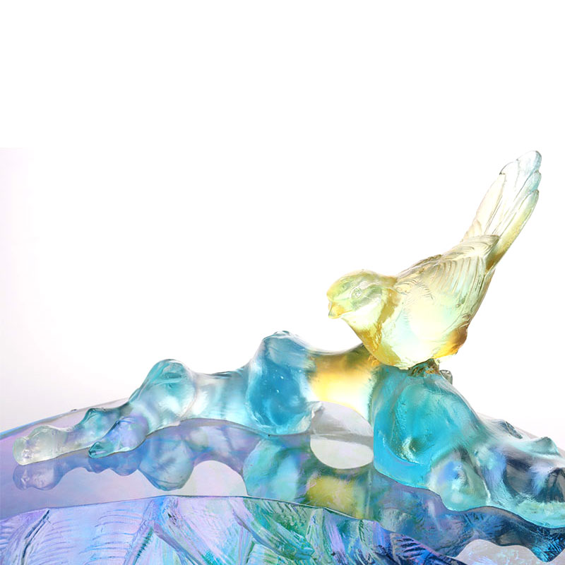 • 鳥の装飾が施されたクリスタルガラスのフルーツボウル