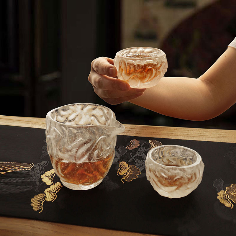 Spark Fireworks シリーズのこの透明なティーセットはまさに芸術作品です。透き通った素材は花火が咲く瞬間を凍らせたかのようで、氷の焼けた模様のひとつひとつは自然が描いた模様のようで、ユニークで詩的です。フェアカップとスモールカップのサイズはうまくデザインされており、実用的なだけでなく、デスクトップに追加された精巧な彫刻のセットのようでもあります。ダークウッドのベースに映えて、より高貴でエレガントな佇まいは、穏やかで美しい暮らしを静かに物語るかのようです。お茶の試飲に使用しても、装飾として使用しても、人々に視覚と精神の二重の楽しみをもたらすことができます。本当に独創的で美しいですね。